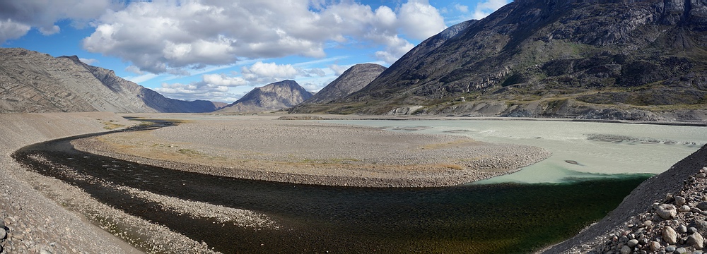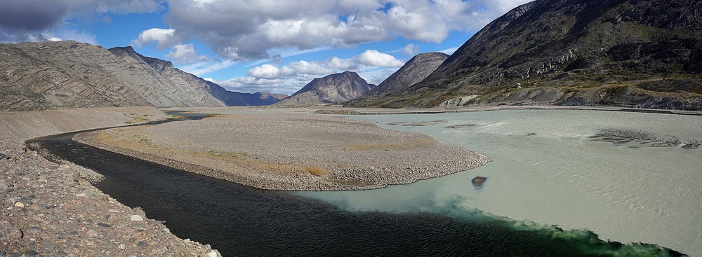 des klaren Paradiestal-Flusses (links) in den trüben Sarfartoq (rechts)