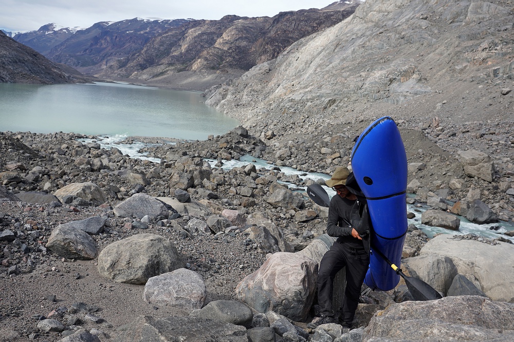 Gletscher-Endsee wird das Packraft aufgeblasen