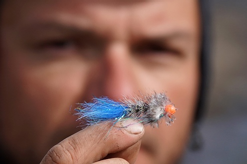 | Es wird also fieberhaft die 7er Fliegenrute zusammengesteckt und schon furcht ein Streamer durch den Kolk. Die Fische sind ins Weißwasser im Einrinn geflüchtet und ein paar halten sich auch noch im Ausrinn auf. Dort wie da sind rasch ein paar Exemplare überlistet, bevor sie endgültig Verdacht geschöpft haben und verweigern. |