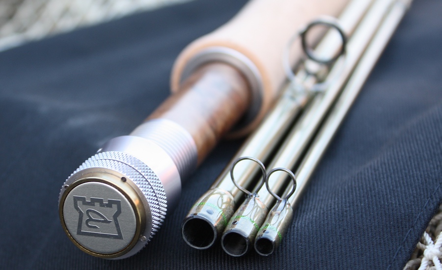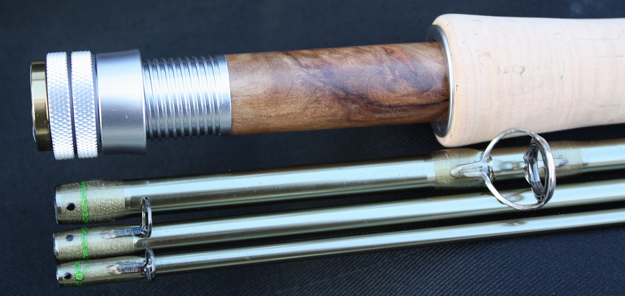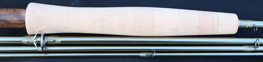 Teilung und Maße: Vierteilige Fliegenrute, Länge 9'0" (zusammengesteckt und nachgemessen 274,5 cm), vier gleichlange Teile a. 72,5 cm Länge (Handteil 0,5 cm länger). Das Gewicht der Rute beträgt 82 Gramm. Blankdurchmesser über dem Griff: 7,9 mm, Blankdurchmesser an der Rutenspitze: 1,7 mm. Länge Transportrohr: 78 cm, Gewicht Transportrohr (leer): 460 Gramm. Ausstattung: Schlanker, glanzlackierter Blank in Olive Metallic aus hochmodulierter Kohlefaser mit 330 SINTRIX Technologie. Die Verbindungen der Einzelteile wurden als exakt passende Überschubverbindungen ausgeführt, die oberen Enden der Ruteneinzelteile wurden gegen das Eindringen von Schmutz und Wasser abgedichtet. Beringung: Handteil ohne Beringung, jedoch mit einer feststehenden Fliegeneinhängeöse über dem Griff in Rollenflucht, zweites Teil mit einem Fuji Leitring mit SiC-Einlage und einem Einstegring, drittes Teil mit drei Einstegringen, Spitzenteil mit fünf Einstegringen und dem Spitzenring. |