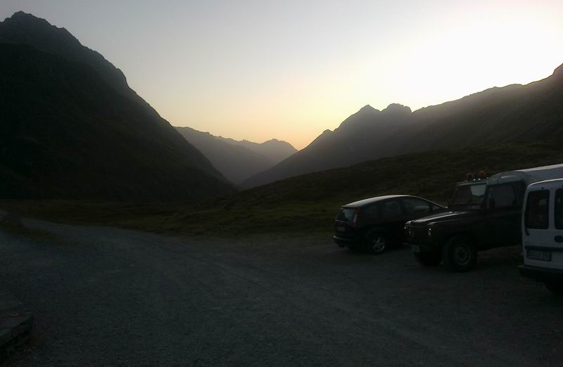 In den Gedanken und Erinnerungen zu diesem Thema, finde ich mich zum ersten Male in einer Situation wo ich kein wirklich passendes, deutsches Wort finde. Allerdings gibt es im Norwegischen eine schöne Metapher, die ich frech entlehnen werde. Sie heißt „ferd“ und bedeutet nicht nur Fahrt oder Reise von A nach B, sondern ein Unternehmen, ein Abenteuer und unterwegs zu sein. Das kann die brudeferd (Brautfahrt), also das Umwerben wie auch das Heimholen der Geliebten sein; wie auch die gravferd, jene letzte Reise die man nicht mehr auf den eigenen Beinen tut. In diesem Sinne müsste der Titel dieser Geschichte eigentlich „på fiskeferd i fjell“ lauten. Im Grunde beginnt die fiskeferd am Morgen des Vortages. Soviel ist zu tun: Etliche male den Wetterbericht aufrufen, die Ausrüstung überprüfen und zusammenstellen, da und dort was reparieren und ergänzen. Und immer wieder die Frage: Ist alles Notwendige vorbereitet und eingepackt? Am Wasser selbst sind die Möglichkeiten Vergessenes zu ersetzen, so gut wie nicht vorhanden. In der späten Nacht dann das Matpackle - die Verpflegung herrichten und alles für den Morgenkaffee vorbereiten. Nach einer viel zu kurzen Nacht um 3:30 Uhr sich selbst verfluchend „o herregod hva gjör jeg!“ Aus dem Nest krabbeln, rasch den Kaffee aufbrühen und ein Butterbrot in den Magen stopfen, während ich nochmal den Wetterbericht abrufe. Schnell muss es gehen: um sechs Uhr sperrt die Mautstation an der Hochalpenstraße auf und dorthin sind es fast zwei Stunden Fahrt. Noch einen Kontrollblick auf die Ausrüstung und in den dunklen Himmel geworfen, dann brummt der Landrover mit mir los. Kurz vor Sechs erreiche ich die Mautstation, während das erste Morgenrot über die Gipfel der Silvretta grüßt. Der Mautner kommt ein bisschen zu spät – wen schert's. Ich zahle die Maut, kaufe meine Tagesfischerkarte und wechsle noch ein par Worte mit dem freundlichen Mann. Fast ungeduldig klingt der Dicke als wir die ersten, von zweiundzwanzig Kehren der Alpenstraße hinauf tuckern. Als wolle er, wie ich rasch ans Wasser... In der neunzehnten Kehre steht ein blöder Hirsch mitten auf der Straße! So verdattert wie er dreinschaut, hat er ebenda geschlafen und wir haben ihn geweckt. Als er einfach nicht Platz machen will lasse ich den Landy ganz, ganz langsam auf ihn zurollen. Woher weiß der Kerl das ich kein Gewehr dabei habe? Im allerletzten Augenblick bevor der Dicke ihn bei Seite schiebt, springt er dann doch ab. Endlich oben angelangt, in den Schotterweg einbiegen, der zu „unserem“ Parkplatz führt. Zweimal durch den Wildbach holpern und stolpern und wir sind da. |