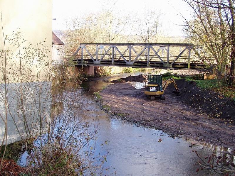 Wieder Bagger in der Ilm Laut Einschätzung der zuständigen Fluss- Behörden (und weil noch Fördermittel weg müssen) beengt eine über Jahrzehnte linksseitig abgelagerte Kiesbank den Durchlass unter der Eisenbahnbrücke am Käsewerk. Also rücken wieder mal Bagger und LKW an, laden den Kies auf und verteilen ihn weiter unten im Flusslauf, was nebenbei natürlich jede Menge Dreck macht. Unser Einwand, warum das ausgerechnet zur Bachforellen- Laichzeit im Spätherbst stattfinden muss, wird zwar zu Kenntnis genommen, bewirkt jedoch nichts! |