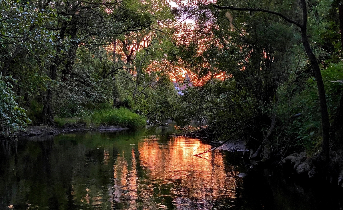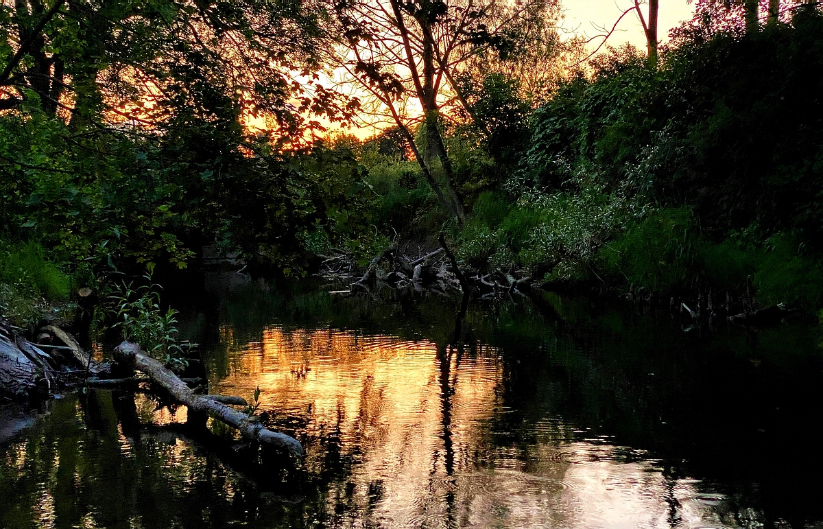 am Fluss, im letzten Licht der untergehenden Sonne