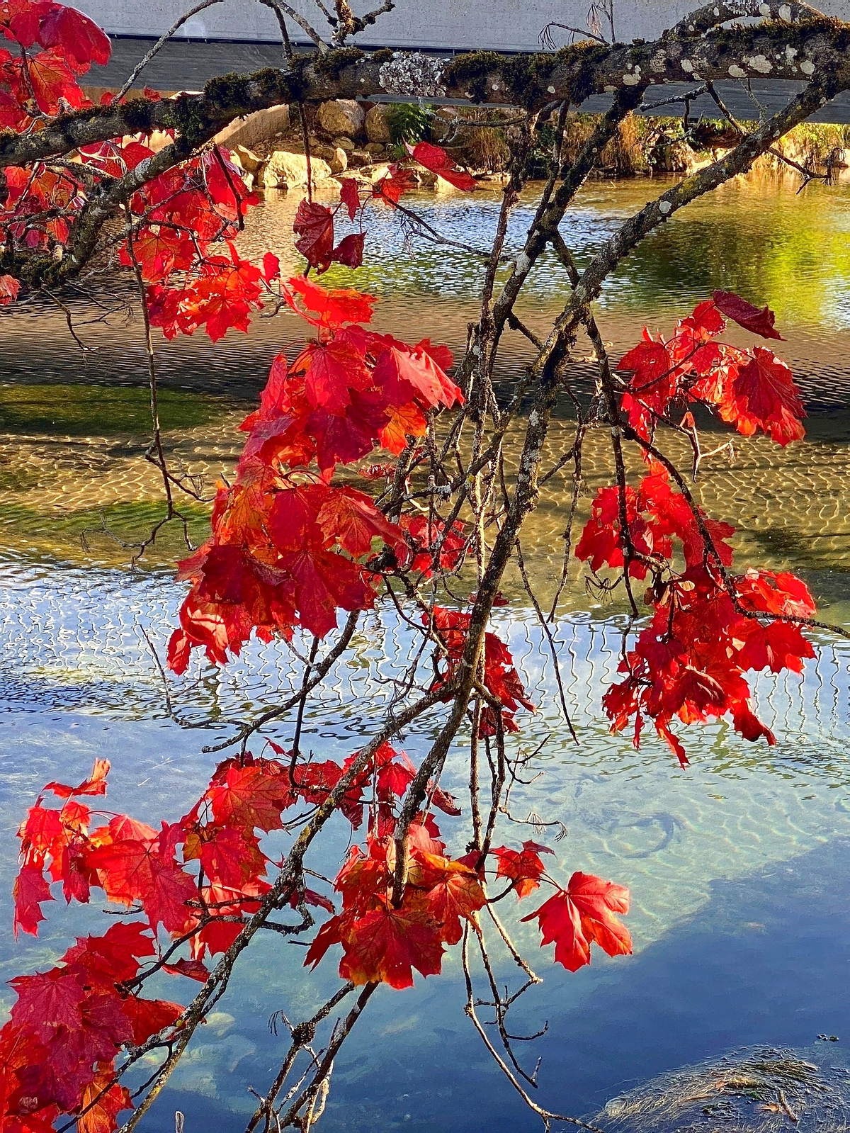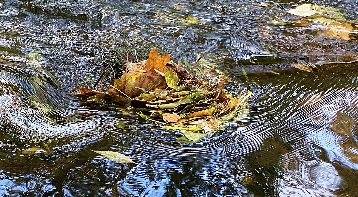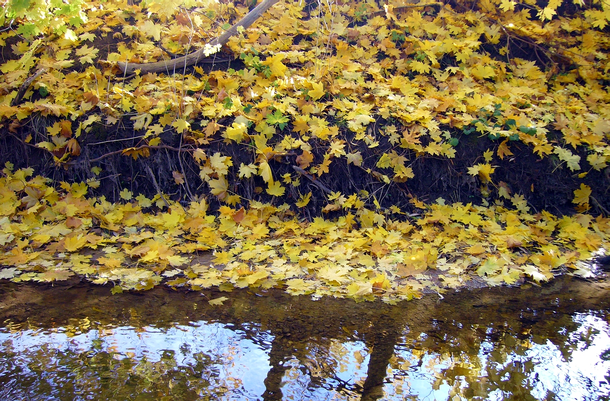 langsam bunt werden und herabfallen und wenn das Wasser ganz klar und kalt