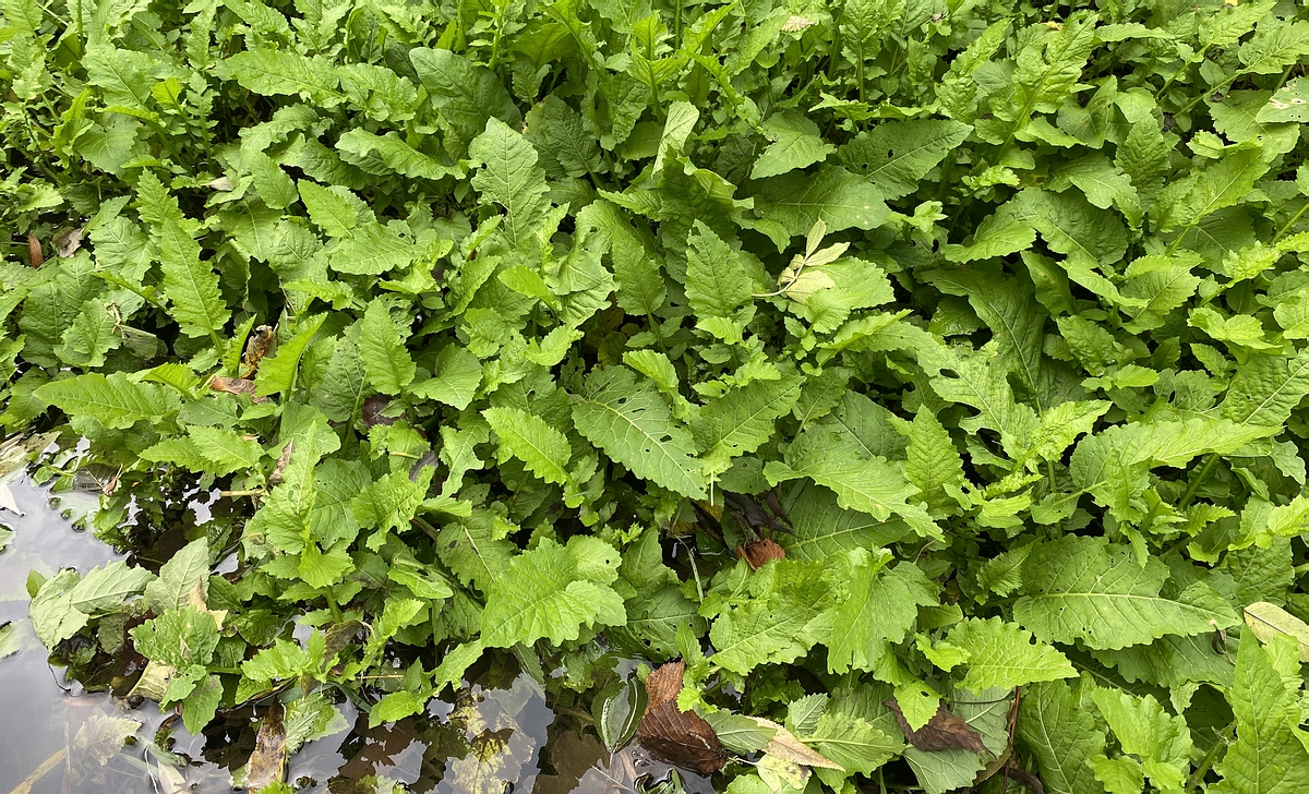 sich große Felder von Sumpfkresse gebildet
