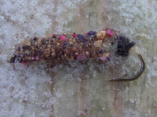 | Neustes Projekt in der riesigen INSELCREW Fliegenwelt sind die Cased Caddis - zu gut Deutsch: Köcherfliegenlarven im Köcher. Die Kollektion besteht aus zehn verschiedenen, unbeschwerten Mustern, gebunden auf die Hakengrößen 6, 8 und 10 (Stand 12/2008). Verwendet wurden langschenkelige Markenhaken in guter Qualität, mit feinen Spitzen, sauber geschlossenen Öhren und leicht andrückbaren Widerhaken. Der Aufbau ist bei allen Mustern gleich, Unterschiede gibt es nur in den Farben der Dubbing- Mischungen und der verschieden- artigen Sande für die Imitation der Gehäuse. Grundlage ist ein dicker, zweifarbiger Dubbingkörper, dessen obere drei Viertel mit Klebstoff und anschließend mit verschiedenfarbigen und unterschiedlich gekörnten Sanden und Steinchen versehen wurden. | ![]() |