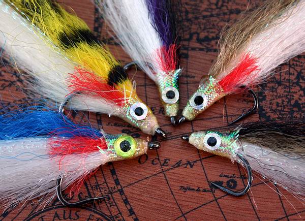 | In enger Zusammenarbeit mit Pro-Guides stellte Inselcrew kürzlich eine neue Kollektion Salz- und Süßwasserstreamer mit Epoxy-Kopf vor, wir haben uns 5 Stück davon näher angeschaut. Die Streamer sind 9 - 15 cm lang, vollständig aus Synthetikmaterial gefertigt und imitieren verschiedene Fischarten aus dem Salz- und Süßwasserbereich: es gibt je ein Modell "Kleiner Brutfisch", "Kleine Regenbogenforelle", "Kleine Makrele", "Kleiner Hecht" und "Kleine Bachforelle". Alle Fliegen wurden sehr korrekt auf starke und scharfe Black-Nickel- Salzwasserhaken gebunden, mit sauber geschlossenen Fliegenöhren und feinen, leicht andrückbaren Widerhaken. | ![]() |