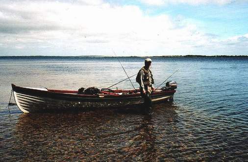 Von unserer B&B-Suche am Abend vorher war mir eine Hinweisschild in Erinnerung geblieben. Darauf stand B&B und Angling Lodge und Boats for rent. Eine magische Kombination. Das mußten wir überprüfen. Wir fuhren hin und Volltreffer. Nach kurzer Verhandlung hatten wir ein Boot mit Motor und Benzin und eine kurze Einweisung für die Bucht, verbunden mit dem Hinweis, diese bitte nicht zu verlassen, da der Weg aus der Bucht heraus für nicht Ortkundige, ob den Steinen im Wasser, zu gefährlich ist. Ein kleiner Wermutstropfen, aber immerhin konnten wir fischen. Und das Angebot morgen einem dem Inhaber der Lodge, Basil Shields, auf seinem Weg auf den Corrib folgen zu können, linderte die Enttäuschung schnell.
