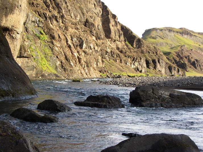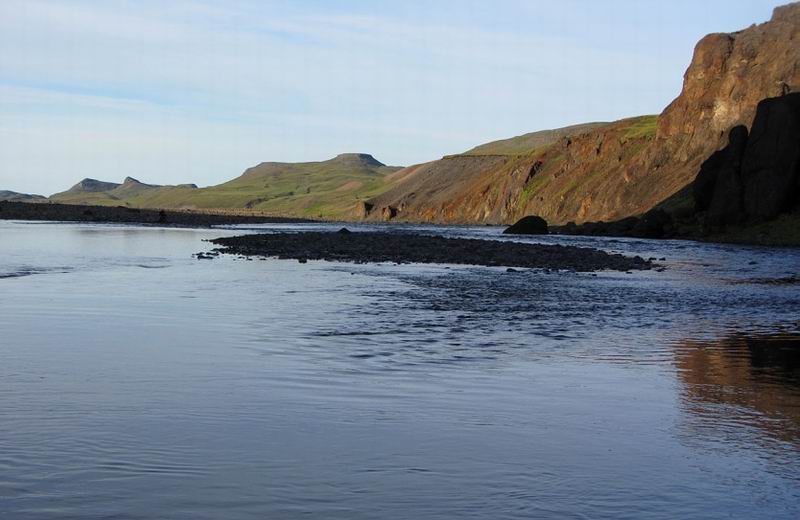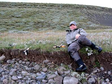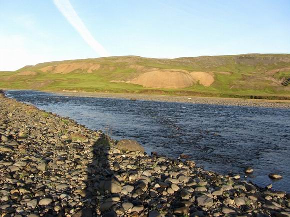 Am Abend befischen wir noch halbherzig den unteren Streckenabschnitt zur Grenze Beat 2, die wir schon vor Tungufljót befischten, ohne Erfolg. Der Fußmarsch hat mich körperlich ziemlich mitgenommen, Bernhard hin gegen fischt weiter als nichts gewesen wäre, vielleicht liegt es ja doch in den 2 Jahren Altersunterschied? |