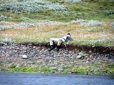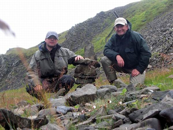Unterdessen kam bereits Bernhard, er hat die lange Durststrecke, die wir schon ohne Fisch hatten, endlich gebrochen. Einen Lachs- Milchner und wieder released. Wir marschierten weiter flussaufwärts in einem sehr engen Canyon, leider ohne weiteren fischereilichem Erfolg. Es war wie ein Lotteriespiel, da sich in keinen Pools Fisch zeigte und diese Pools nur mit weiten Fußmärschen zu erreichen waren. |