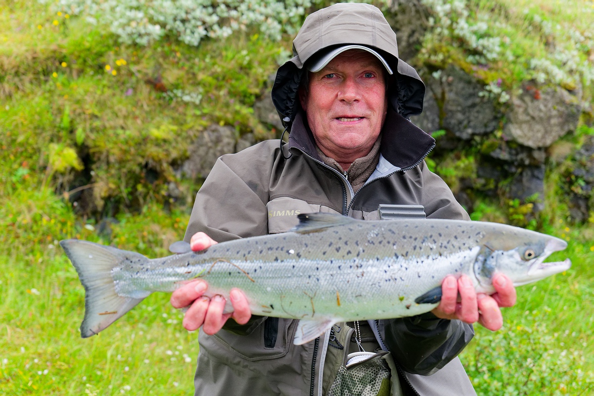 Die West Rangá ist ein sehr schöner, abwechslungsreicher Fluss mit einem sehr guten Lachsaufstieg, den man in zwei vollen Angeltagen nur bruchstückhaft kennenlernen kann. Mit unseren fünf gefangenen Lachsen lagen wir am oberen Ende der realistischen Erwartungen zu dieser Zeit und waren damit ziemlich zufrieden. Unser Guide Sverrir war sehr erfahren und immer bemüht, uns an den Fisch zu bringen. Die ganze Fischerei und auch die Lodge sind hochprofessionell organisiert. Einziger Wermutstropfen ist hier wirklich der exorbitante Preis, selbst für eine geteilte Rute… Die beiden Tage am Villingavatn waren wie erwartet herausfordernd, wobei zumindest ich mit meinen beiden größeren Brown Trout zufrieden war. Die Tage am Úlfljótsvatn und die knapp drei Stunden am Thingvallavatn waren eher schwierig und bis auf 20 Minuten bei Tobi nicht wirklich erfolgreich. An den großen Seen kommt es einfach darauf an, zur richtigen Zeit am richtigen Ort zu sein, was entweder mit Ortskenntnis, viel Ausdauer oder mit Glück zu tun hat. Ob wir es beim nächsten Besuch in dieser Ecke Islands wieder mit der Veidikortid versuchen oder etwas Anderes machen, werden wir dann sehen. Wobei man bei der Veidikortid wohl eher etwas mehr Zeit als zweieinhalb Tage mitbringen sollte. Während unserer drei Tage an der Midfjardará haben Manfred und ich mit der Konzentration auf die Lachsfischerei einfach auf das falsche Pferd gesetzt. Ich hätte eigentlich schon gedacht, dass man dort den ein oder anderen Lachs fangen kann, vor allem, da während unseres Aufenthalts in der Lachsstrecke direkt oberhalb sehr gut gefangen wurde. Aber vermutlich muss man auch hier genau zur richtigen Zeit am Wasser sein, da die Lachse scheinbar eher schnell durch den Trout/Char-Beat nach oben ziehen. Zumindest haben wir außer am ersten Abend im Pool unter der Brücke keine weiteren Lachse springen sehen. Zum Schluss nochmal ein herzlicher