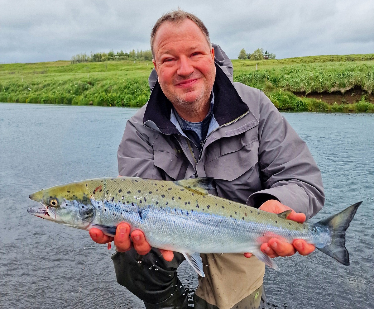 Unser Favorit nach der EWF war eigentlich die Jökla im Nordosten von Island, die von Throstur Ellidason bewirtschaftet wird. Dieser Plan kam dann erstmals ins Wanken, als die Fischerei an der Jökla im Jahr 2023 bereits Anfang August abgebrochen werden musste, da das Reservoir, das das Gletscherwasser über den Sommer zurückhält, bereits zu dieser frühen Zeit übergelaufen ist. Dazu kam noch, dass die Preise für 2024 trotzdem relativ massiv erhöht wurden, sodass wir uns anderweitig umsahen. Ich nahm dann nach meinem Sommerurlaub mit der Familie Kontakt mit Carsten Dogs von pukka destinations auf, über den wir auch schon unsere vergangenen drei Angelreisen gebucht hatten. Nachdem wir uns auch einige andere Lachsflüsse angesehen hatten, entschieden wir uns schließlich für zwei Tage an der West Rangá. Die West Rangá ist seit gut 20 Jahren einer der produktivsten Lachsflüsse in Island, obwohl die Lachse dort nur in geringem Maße natürlich aufwachsen. Das liegt am feinen Lavasand des Flusses, der die Lachseier nur selten zur Reife kommen lässt. Man greift dem Lachsbestand deshalb künstlich unter die Arme, in dem man die größeren weiblichen Lachse abstreift, künstlich befruchtet und in einer Fischzucht ausbrütet, bis man die kleinen Lachse in Teiche am Ufer der Rangá aussetzt und diese bei Hochwasser in den Fluss entlässt. Danach entwickeln sich die kleinen Lachse, wie wenn sie natürlich aufgewachsen wären und kommen nach einem oder mehreren Jahren im Atlantik wieder in die West Rangá zurück. Wir haben letztendlich eine