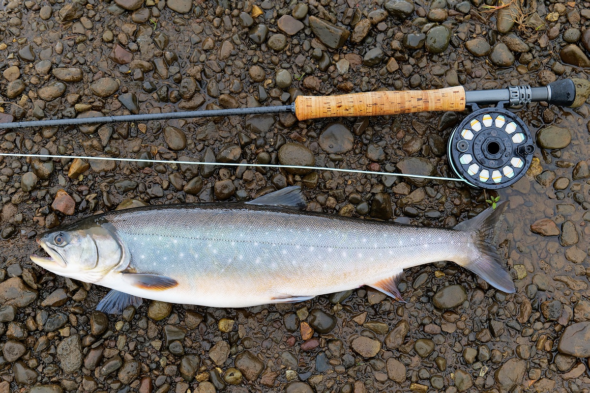 rechten Seitenarm, wo er vor zwei Tagen bereits zwei Arktische Saiblinge