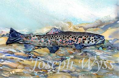 8: Goldene Momente II, Acryl auf Leinwand, Original, Grösse Bild 50x70x4,5. verkauft 9: Bachforelle II, Aquarell, FineArt Print in limitierter Auflage von 25 Expl., handsigniert und nummeriert. FineArt Print auf Büttenpapier, mit Passepartout, hinter Glas gerahmt in versilbertem Holzrahmen. Grösse Bild/Rahmen 39x59/60x80 cm, Preis inkl. Rahmen CHF 330 EUR 213 plus Versand nach Vereinbarung. Preis ohne Rahmen CHF 230 EUR 148 plus Versand nach Vereinbarung. 10: Forelle verlässt ihr Versteck, Aquarell, FineArt Print in limitierter Auflage von 25 Expl., handsigniert und nummeriert. FineArt Print auf Büttenpapier, mit Passepartout, hinter Glas gerahmt in versilbertem Holzrahmen. Grösse Bild/Rahmen 39x59/60x80 cm. Preis inkl. Rahmen CHF 330 EUR 213 plus Versand nach Vereinbarung. Preis ohne Rahmen CHF 230 EUR 148 plus Versand nach Vereinbarung. 11: Aeschenmännchen II, Aquarell, FineArt Print in limitierter Auflage von 25 Expl., handsigniert und nummeriert. FineArt Print auf Büttenpapier, mit Passepartout, hinter Glas gerahmt in versilbertem Holzrahmen. Grösse Bild/Rahmen 39x59/60x80 cm. Preis inkl. Rahmen CHF 330 EUR 213 plus Versand nach Vereinbarung. Preis ohne Rahmen CHF 230 EUR 148 plus Versand nach Vereinbarung. 12: Egli, Aquarell, FineArt Print in limitierter Auflage von 25 Expl., handsigniert und nummeriert. FineArt Print auf Büttenpapier, mit Passepartout, hinter Glas gerahmt in versilbertem Holzrahmen. Grösse Bild/Rahmen 34x34/50x50 cm. Preis inkl. Rahmen CHF 250 EUR 161 plus Versand nach Vereinbarung, Preis ohne Rahmen CHF 190 EUR 122 plus Versand nach Vereinbarung. 13: ...und Tschüss..., FineArt Print in limitierter Auflage von 25 Expl., handsigniert und nummeriert. FineArt Print auf Büttenpapier, mit Passepartout, hinter Glas gerahmt in versilbertem Holzrahmen. Grösse Bild/Rahmen 39x59/60x80 cm Preis inkl. Rahmen CHF 330 EUR 213 plus Versand nach Vereinbarung. Preis ohne Rahmen CHF 230 EUR 148 plus Versand nach Vereinbarung. Für alle Bestellungen aus dem Fliegenfischer-Forum gibt es 15 % Rabatt auf die angegebenen Preise ! |