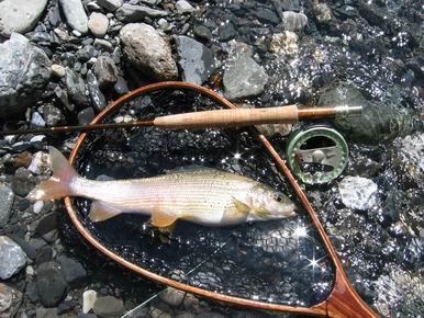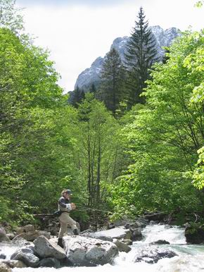 Ich persönlich finde den oberen Teil der Gail, im sogenannten Lessachtal, mit Abstand interessanter - allerdings hat es dort keine Äschen mehr. Dafür wunderschöne Bach- und Regenbogenforellen. Die verschiedenen Zugänge zum Lessachtal bekommt man im im Hotel mit erklärt. Dafür sollte man dann jeweils einen ganzen Tag einplanen und entsprechend Proviant (Bier kann man im Fluß kühlen! Wasser nicht vergessen - es kann auch heiß werden) mitnehmen. |