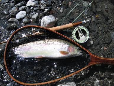 und nach kurzer Zeit ist die wunderbare gute 30 cm lange Regenbogenforelle