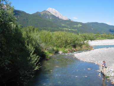 Kommen wir nun zum Hauptfluss, der Gail die, unschwer zu erkennen, dem Gailtal seinen Namen gibt. Auf mehr als 11 km kann sie von den Gästen des Hotels befischt werden. Auf dieser Strecke zeigt sie sich einem mit ganz unterschiedlichen Gesichtern. Im Unterlauf fließt sie als "zivilisierter" Fluss recht gerade mit einigen großen Steinen durch Kötschach-Mauthen und weiter nach Osten. Hier finden sich hauptsähclich wunderbar bläulich türkis gefärbte Äschen. Gezieltes Anfischen von identifizierten Standplätzen oder wenn nichts geht, suchendes schräg stromab und abtreiben/rüberschwingen lassen der Fliege führt hier, mit der tiefgeführten Nymphe, zum Erfolg.