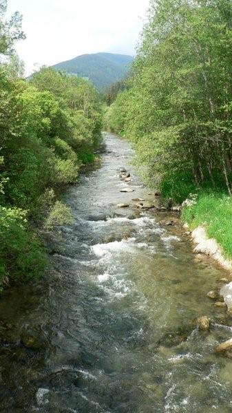 Blick von der Brücke an der unteren Reviergrenze => Unten: Blick auf die Lienzer Dolomiten Weiter unten: Beim Indianerfischen - beim nächsten Schritt musste man auf die Knie.... |