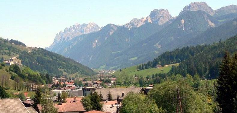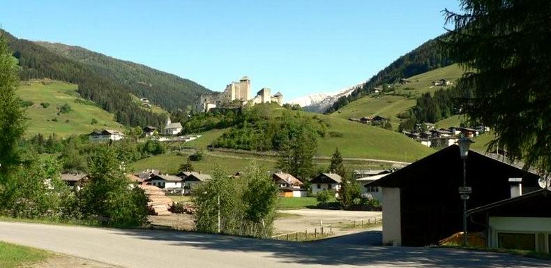 Unten: Burg-Ruine Schloss Heinfels - auf den Bergen im Hintergrund liegt noch Schnee - einige Tage zuvor hatte es bis ins Tal geschneit. |