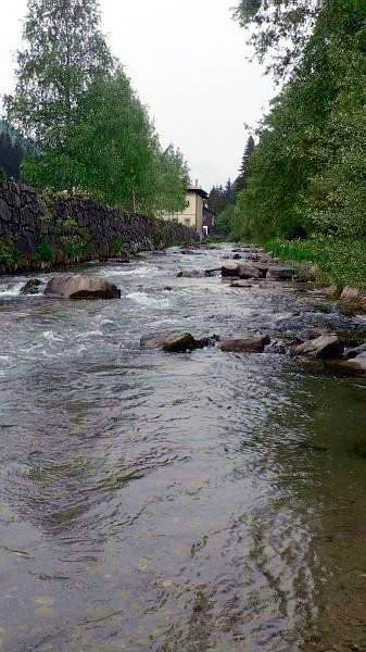 Da Leo einen Tag früher angereist ist, konnte er uns, nach ein einer anstrengenden Nacht des Kennenlernens (wir hatten uns vorher persönlich noch nie getroffen), in das Gewässer einführen. Die Strecke kann grob in drei Teile geteilt werden: Einen oberen, eine mittlere Ausleitungsstrecke und darunter den unteren, etwas breiteren und tieferen Streckenteil. Wir haben der