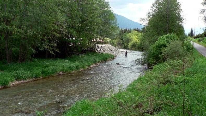 der befischbaren Strecke an der Staatsgrenze zu Italien bis zum Zusammenfluss