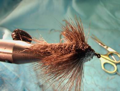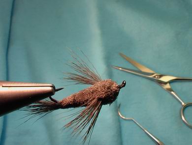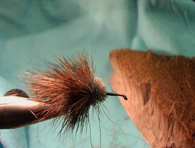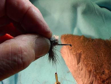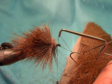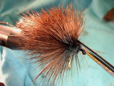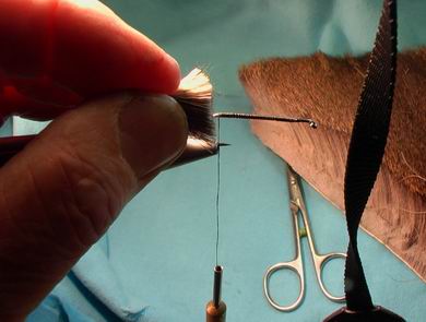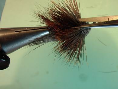 Vorsicht, nicht zuviel wegschneiden, sonst könnte man in den Faden schneiden und das Rehhaar würde sich vom Haken lösen! |
