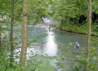 dafür steigen sich aber die Fliegenfischer hier nicht gegenseitig