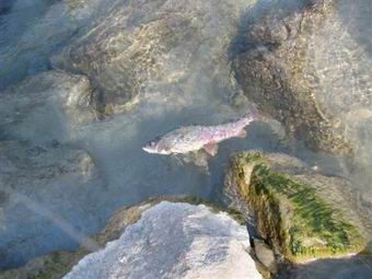 sind Bachforellen, Äschen, Regenbogen und Bachsaiblinge. Das Waten