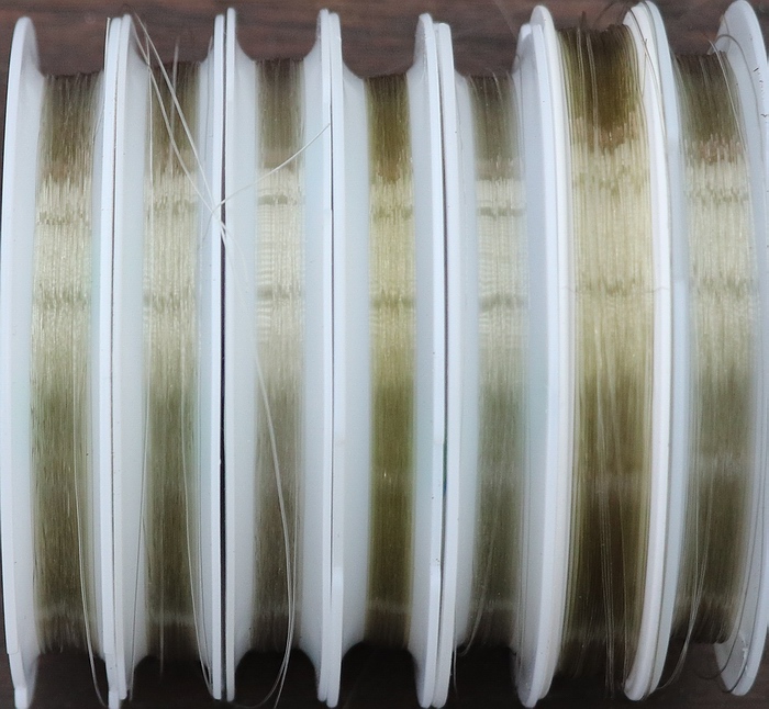 Verfügbare Schnurstärken von 0,08mm bis 0,60mm. Tragkraftbeispiel: die 0,16er trägt 1,6 kg, die 0,25er 3,5 kg. Dehnungswerte: 5% (pro Schnurmeter bei 1,8 kg Zugkraft bei einer 0,25er) Spulengrößen: 25m / 100m / 600m / 1000m / Bulk 1200-3000m. Spulen mit Clip. Preisbeispiel: 25m Spule ab 1,70€ bis 3,81€. Mehr Varianten, Tabelle der Tragkraftwerte und Preise: (HIER). |