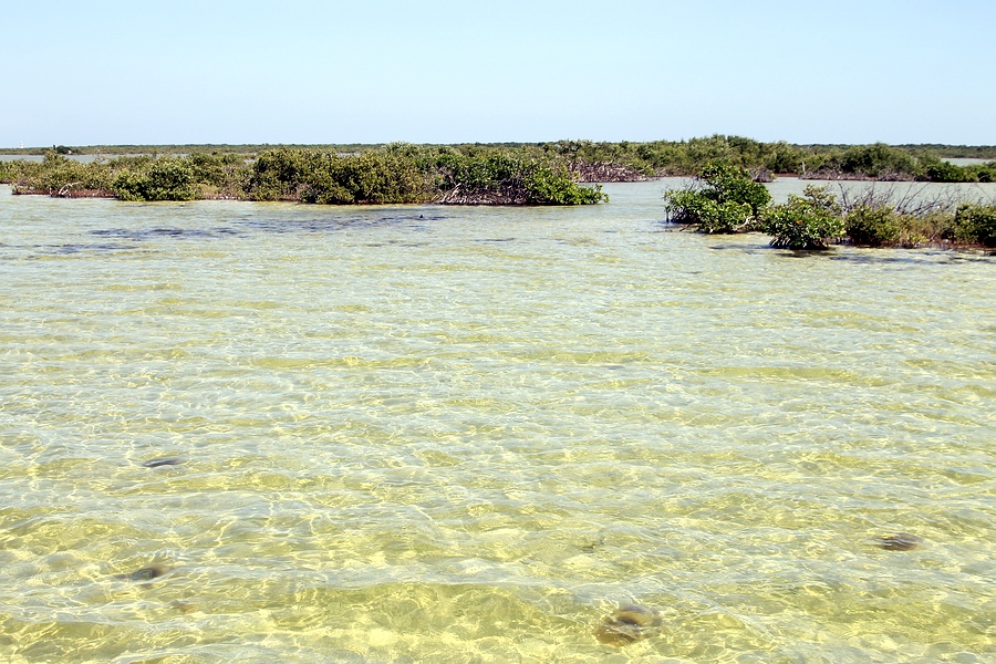| Auf Cozumel angekommen, wurde ich von Carlos, dem Eigentümer von "Aquarius Travel Fishing Representatives", freundlich begrüßt und wir fuhren weiter an einen kleinen Hafen, nicht weit vom Flughafen entfernt. Dort empfingen mich meine Guides für den Tag. Ohne Verzögerung ging es, in einer rund 40 Minuten dauernden Fahrt, zu den Flats auf der Nordseite der Insel. |