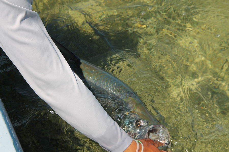 erstreckt. Nach kurzer Zeit konnten wir weitere Schulen an juvenilen Tarpon,