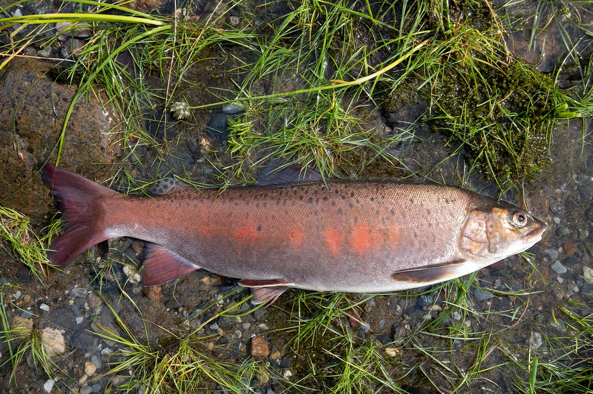 | Bei den Äschen hier handelt es sich um die „Gelbschwanzäsche“ (engl. gold-tailed grayling, Thymallus svetovidovi), die in der Mongolei nur hier im kleinen Einzugsgebiet des Jenissej vorkommt. Diese besonders schöne Äschenart wurde erst 2009 vom russischen Wissenschafter Igor Knizhin gemeinsam mit dem amerikanisch-österreichischen Kollegen Steven Weiss formal erstbeschrieben, und zwar anhand von Material, das ich 2007 im Fluss Sharga im nördlichen Darhad Becken gesammelt habe. Sie gehört zur Gruppe der Arktischen Äschen im weiteren Sinne, von denen es in Nordasien etwa 10 mittlerweile als Arten beschriebene Formen gibt. Das Gebiet der Mongolei entwässert im Wesentlichen in 4 Einzugsgebiete großer Flüsse die nach Russland fließen, und in jedem davon lebt eine andere dieser Äschenarten. Darüber hinaus findet man im abflusslosen zentralasiatischen Becken im Altai die Mongolische Äsche (Thymallus brevirostris). |