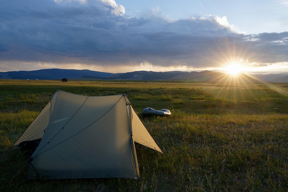 Wir nähern uns schließlich termingerecht der Brücke über den Hug, die wir mit unserem Fahrer als Treffpunkt am nächsten Morgen vereinbart haben. Jakob bemerkt, dass er seine Bergschuhe im letzten Lager vergessen hat, was bei mir zu Erheiterung und Schadenfreude führt. Zum Glück ist der Gute so genügsam, dass es ihm nichts ausmacht, die Rückreise bis Mörön mit Socken und weiter bis nach Hause mit Badeschlapfen zu absolvieren. Wir kaufen uns beim nahen Touristencamp Brot und Bier, um die gelungene Packrafting-Runde mit einem wunderbaren Sonnenuntergang ausklingen zu lassen. |