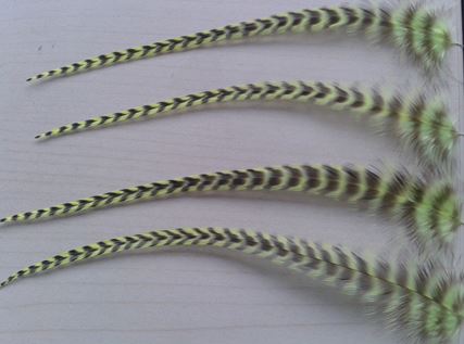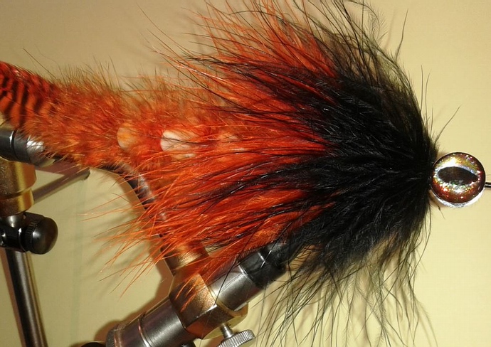 Die erstere habe ich farblich stimmig zu den Saddle Hackle Federn gewählt, die zweite als reine Kontrastfeder. |