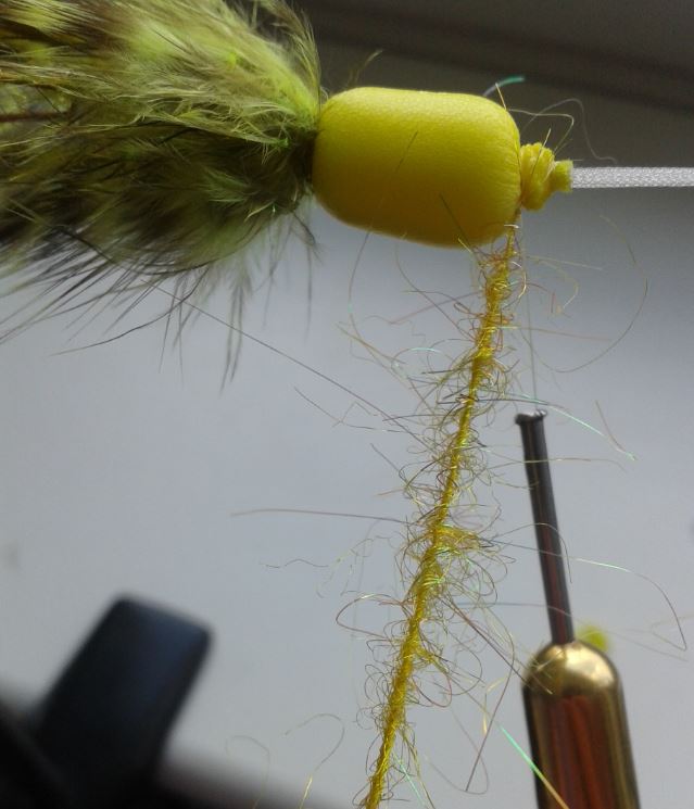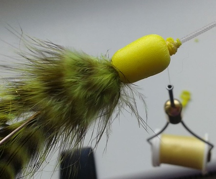 | ... mit gelben und grünen, langfaserig gemischten Mikael Frödin SSS-Dubbing überbinden. | ![]() |