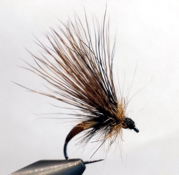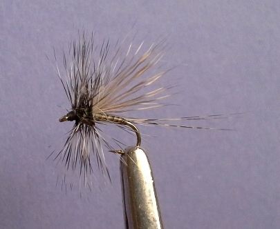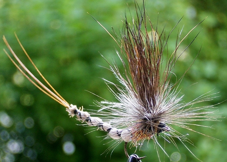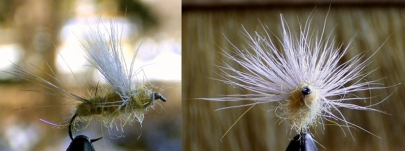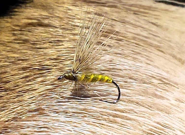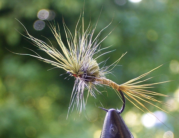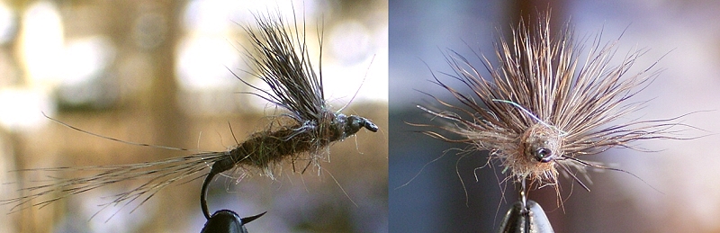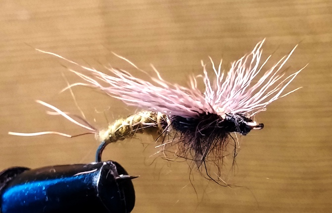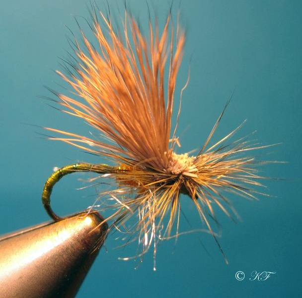 Keine Eigenkreation, sondern ein Muster von Karl-Heinz Kaulig (wenn ich es richtig weiß). Eine Egg Laying Caddis. |