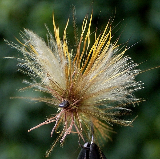 Deerhair dry Ein recht simpel aufgebautes und lange bewährtes Muster aus: Sattelhechel, Moose (is auch fast bissl wie Reh, Mike ) und eben hinter der Hechel ein paar Spitzen REHHAAR, als Schwimmhilfe, Flügel, what so ever... sozusagen. Greez D. Black ;-) |