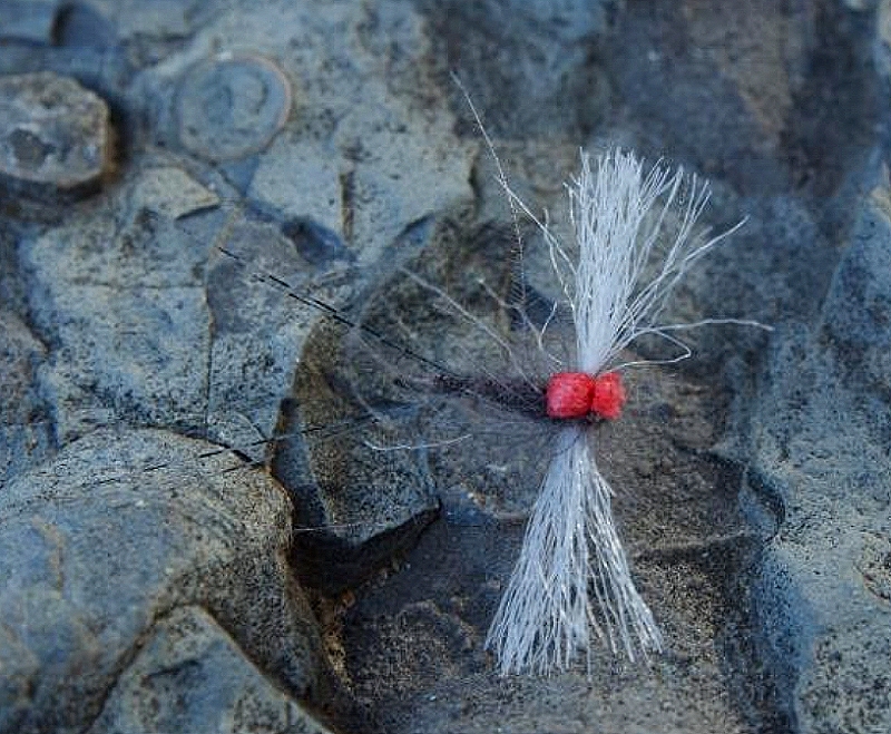Haken: Dohiku 301 #18 Bindefaden: Traun River Technical Tying Thread 12/0 Schwänzchen: Spinnet Tails barred Dubbing: Master Dub adams grey Beinchen: Cdc in dun Flügel: Polypropylene weiß Flügelscheide: Polycelon rot Bindeanleitung: