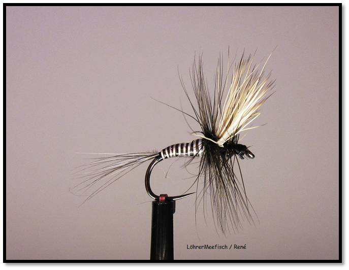 Haken: Widerhakenloser VMC 9388BZ Schwänzchen: Rehhaar Körper: Antron Dubbing Thorax : Antron Dubbing Bindfaden: Sheer 14/0 Schwarz Flügel : Rehhaar (nach Belieben in verschiedenen Farben) Bindeanleitung: