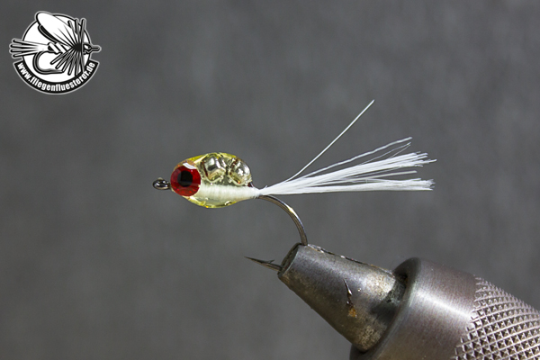 Schwanz einkürzen und Bindefaden wieder zurück zur Hakenspitze führen. |