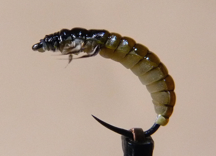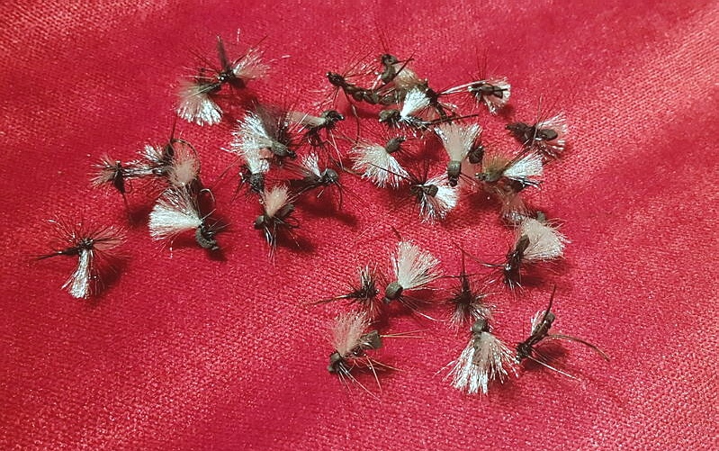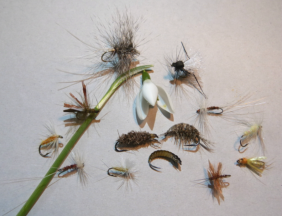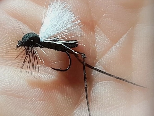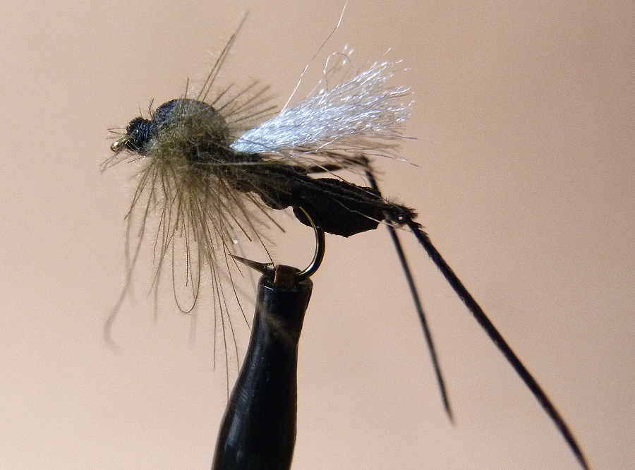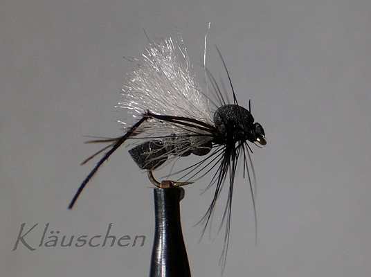 | Man muss es bei der Bibio nicht allzu genau nehmen mit den Details. Nach meiner Erfahrung reicht irgend etwas Schwarzes in Hakengröße 10 bis 14 völlig aus. Die Fische sind, wie gesagt im Fressrausch. So können durchaus auch einfachere Varianten gebunden und sehr erfolgreich angeboten werden. |