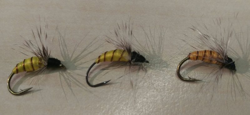 4-5 Windungen hinter und 2 Windungen vor dem Flügel machen. Abbinden und ein Köpfchen formen. Lackieren. 5. Die fertige Fliege, auf die die Farios im Juni sehr gut einsteigen. Unten die gelbe Variante, die noch einem ausgiebigen Test unterzogen wird. Wünsche Euch viel Spaß beim Nachbinden und Fischen dieses absolut erfolgreichen Musters. Tight Lines, Sigi |