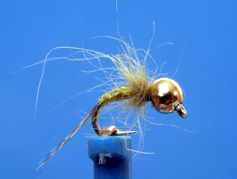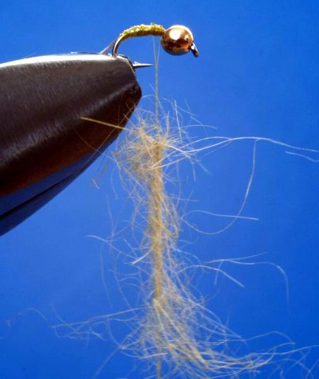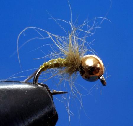 Kopfperle: 2mm Tungsten Dubing: Hends Czech Nymph Dubbing Haken: Scudhaken gebogen Größe 20 Schwänzchen: 3-4 Fibern einer Entendeckfeder Wir spannen