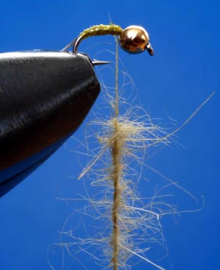 Dubbing dazwischen, danach spannen wir den Faden.