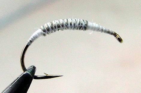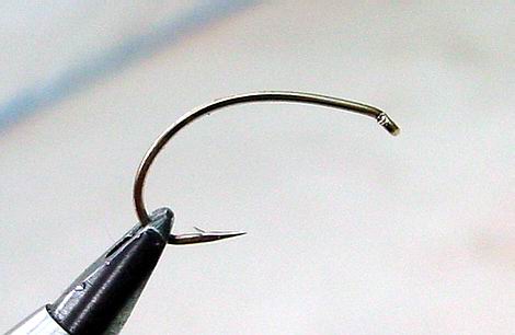 Stück Bleidraht umwickle ich den hinteren Hakenbogen.