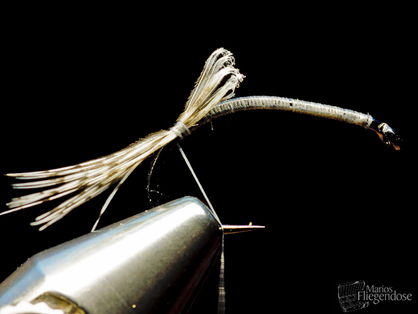 (2) Einige Fibern einer Rebhuhnfeder werden als Schwänzchen eingebunden. |
