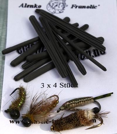 | Die Firma Alenko Franolic stellte uns für eine neue, mehrteilige Leser- Fliegenbinden-Aktion 20 Testpackungen Elastic-Tungsten und Soft-Body Material zum Binden von Nymphen zur Verfügung, die wir im Februar 2012 kostenlos an alle Bewerber verschickt haben. | ![]() |