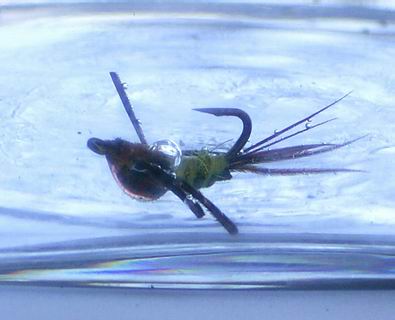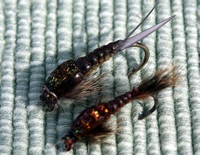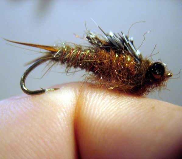 | Auch hier wieder USD, falls der Körper oben auf den Haken gebunden wird. Mit beiden Nymphen habe ich bereits auch gefangen ... |