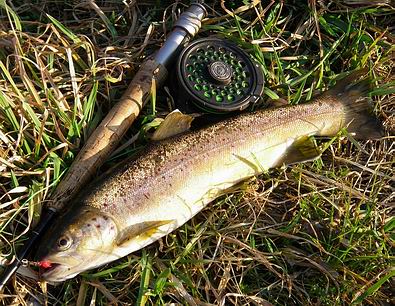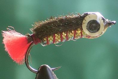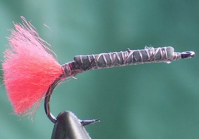 Haken: weiter Hakenbogen # 4 – 8 Bindefaden: Uni Thread tan 8/0 Schwanz: synthet. Marabaou, rot Beschwerung: Elastic Tungsten Körper: Glo Yarn 1300 weiß Rippung 1: Uni Mylar Pearl #16 Rippung 2: Floss rot Rücken: 3-5 Pfauenfibern Augen: Klebeaugen Köpfchen: UV clear fly finish loon Siehe dazu auch: www.christianschmidt-augsburg.de/ fischen_bindenElritze.htm Zum Moonsault: www.christianschmidt-augsburg.de/ fischen_bindenmoonsault.htm Erfolgreich waren beide, der „Moonsault“ mehr für die frisch-besetzten, die Elritze auch gerne für die „alten“ Forellen... (siehe unten) (Ich glaub, das nennt man „klöppeln“ ...) => |