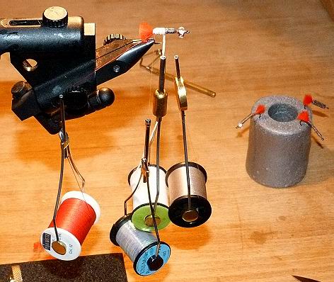 Fliegenbinden fertige Insektenkörper auf einem Haken zu befestigen